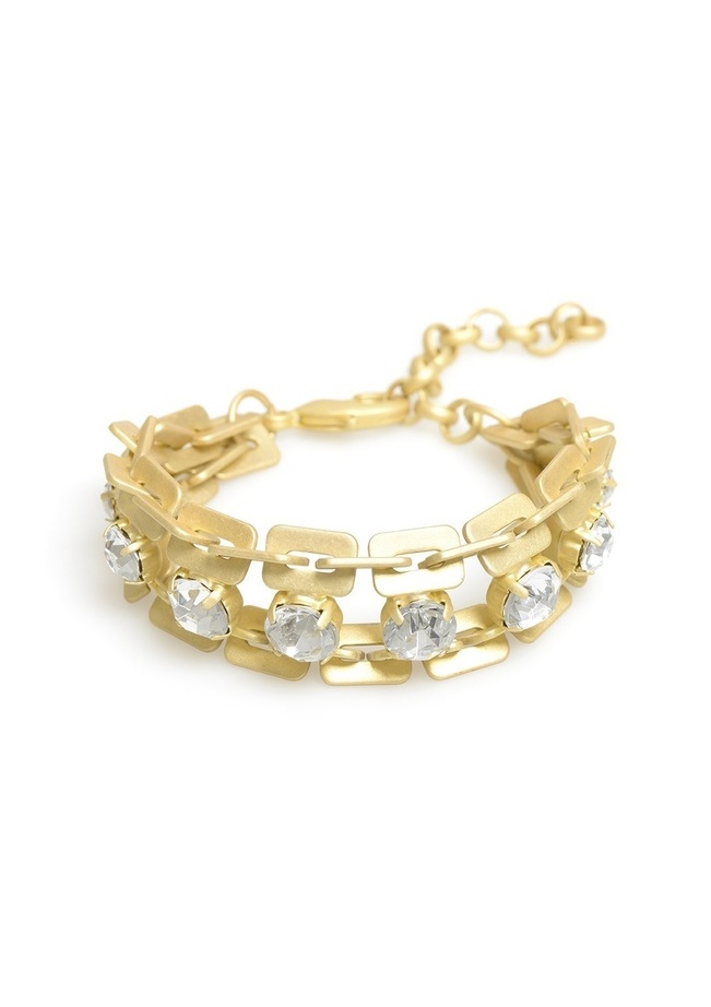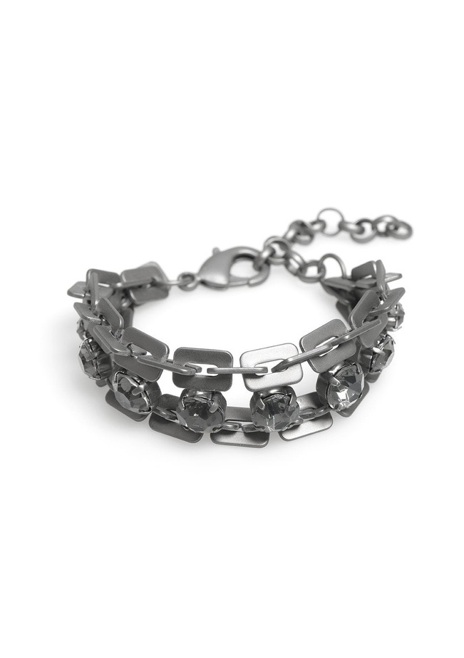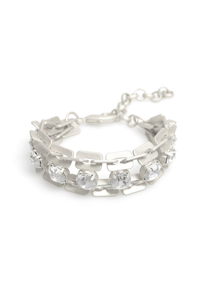 This bracelet is composed of oval crystal stones and chunky cable links.