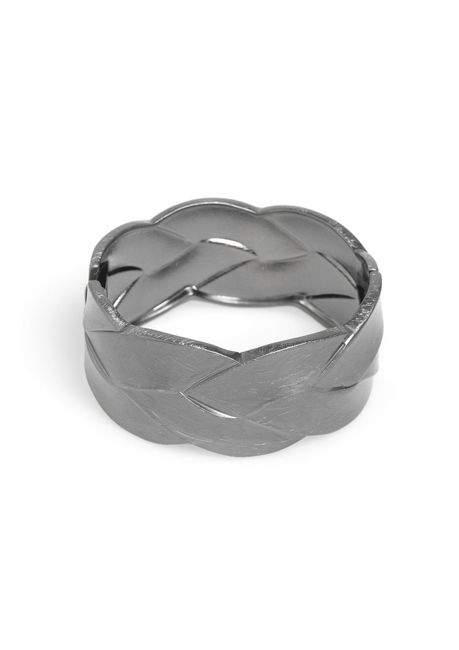 This metal bracelet features a braided design.
