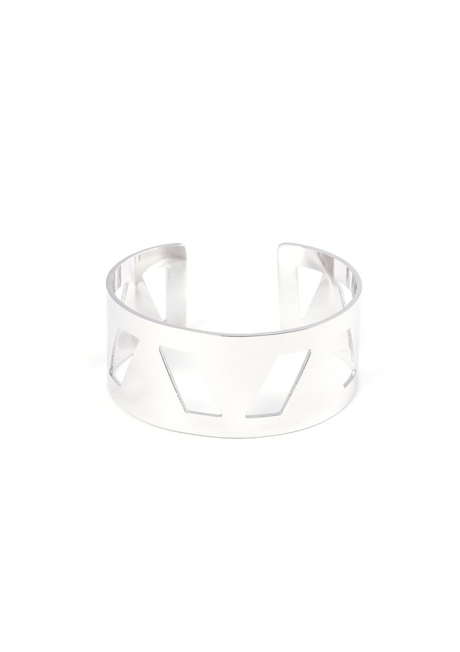 Add this fun cutout cuff to your arm party!-Open Cuff-Adjustable-2.5" Diameter-1" Height-Nickel and Lead Compliant (Hypoallergenic)