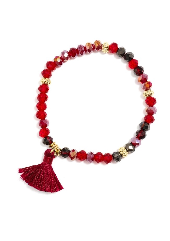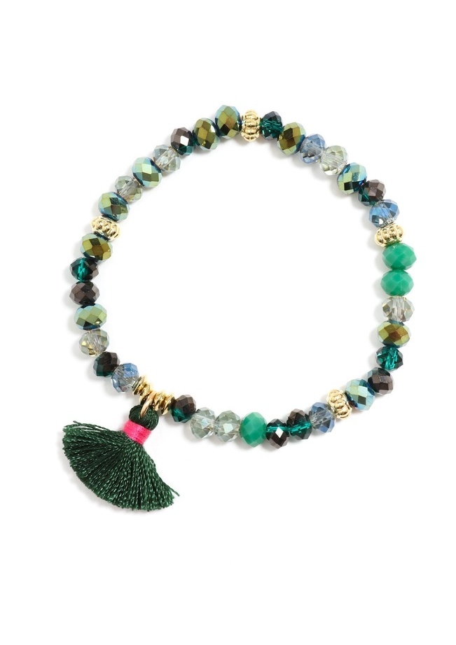 Lightweight and simple, this colorful diamond cut beaded bracelet features a tassel, making the bracelet easy to wear alone or in a stacked look ensuring effortless fashion.