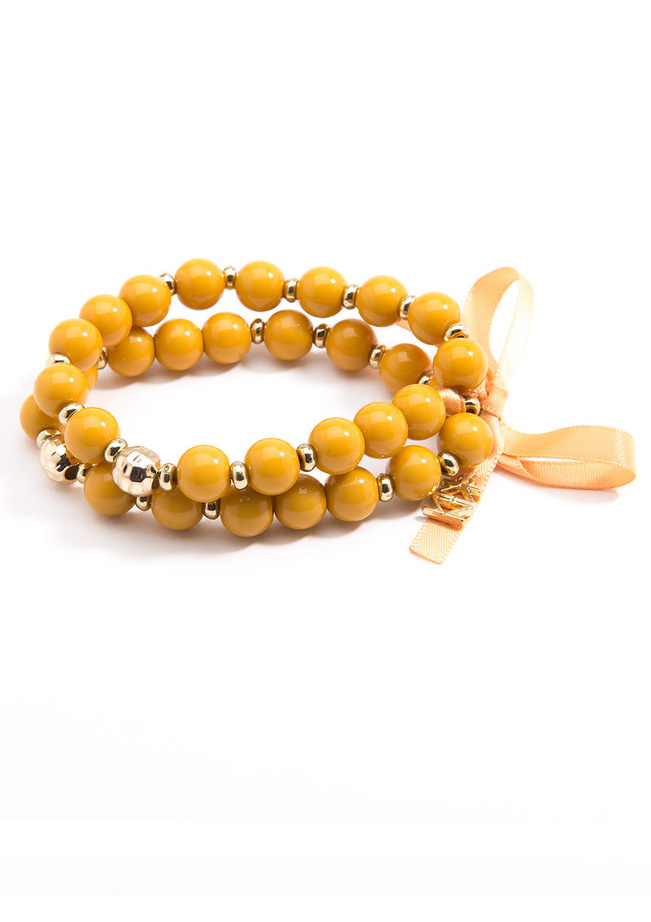 Colorful bead stretch bracelets with gold bead accents in a set of 2 Stretch2" Diameter0.4" Bead-Nickel and Lead Compliant (Hypoallergenic)