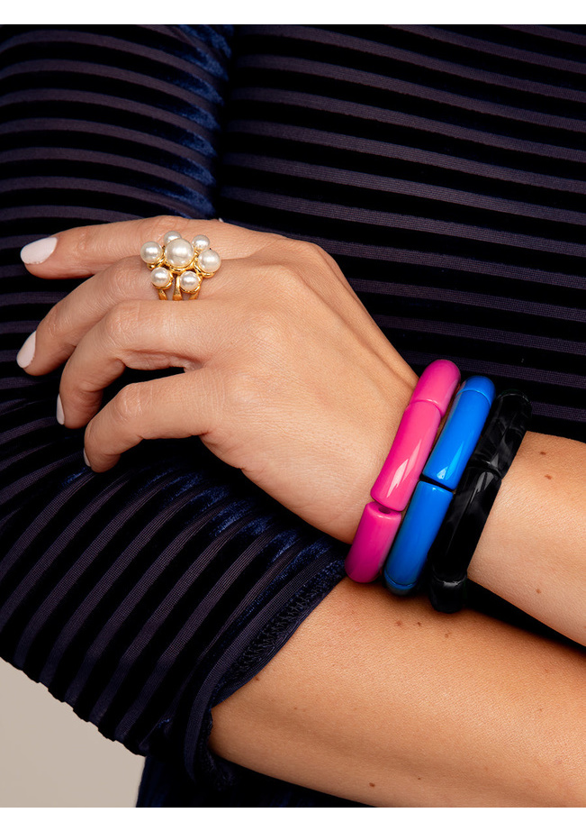 Stretch bracelet composed of colorful tube-shaped resin beads.-Bangle-3" Diameter-0.5" Width-Nickel and Lead Compliant (Hypoallergenic)