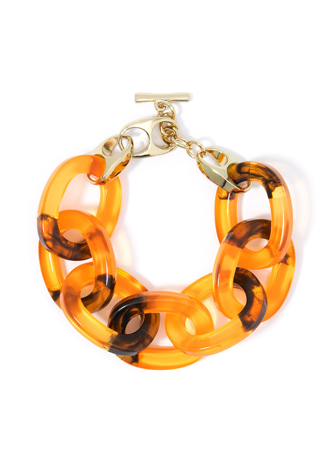 Revamped with resin, this lightweight link bracelet mixes tortoise and pops of color...the perfect mixture for all-year round style.