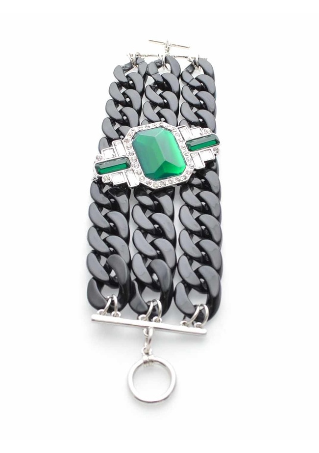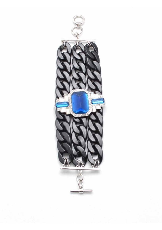 A perfect mix of linked resin, this unique bracelet adds panache with a line of glimmering stones layered on top.