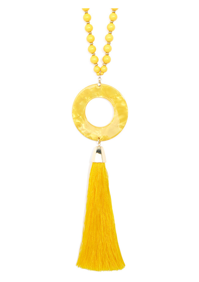 Beaded Acetate Pendant Necklace with Tassel - Yellow