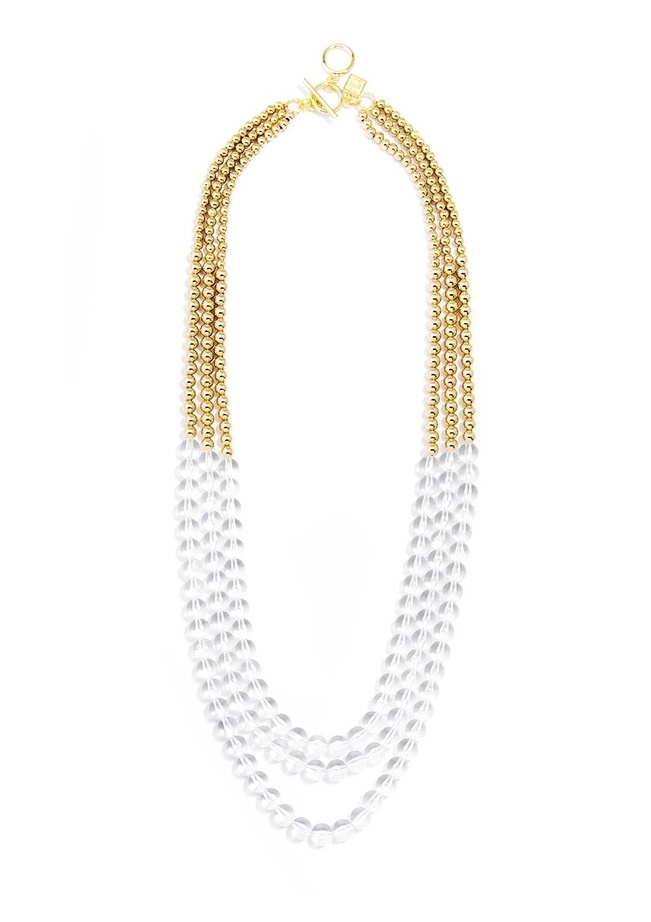 Beaded Lucite and Gold Long Necklace - Clear