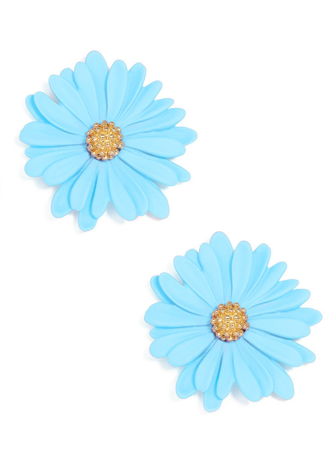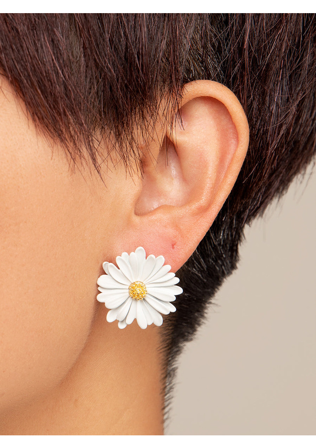 Painted metal daisy-shaped stud earring with 18K gold-plated accents.