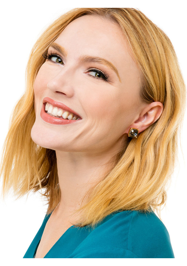 Accent your ears with these playful color speckled crystal earrings. -Post Back -0.5" Width -Nickel and Lead Compliant (Hypoallergenic)