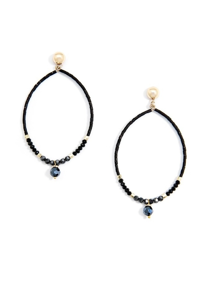 Beaded teardrop shaped hoop earring with different colored accent beads -Post Back 3" Drop -Nickel and Lead Compliant (Hypoallergenic)