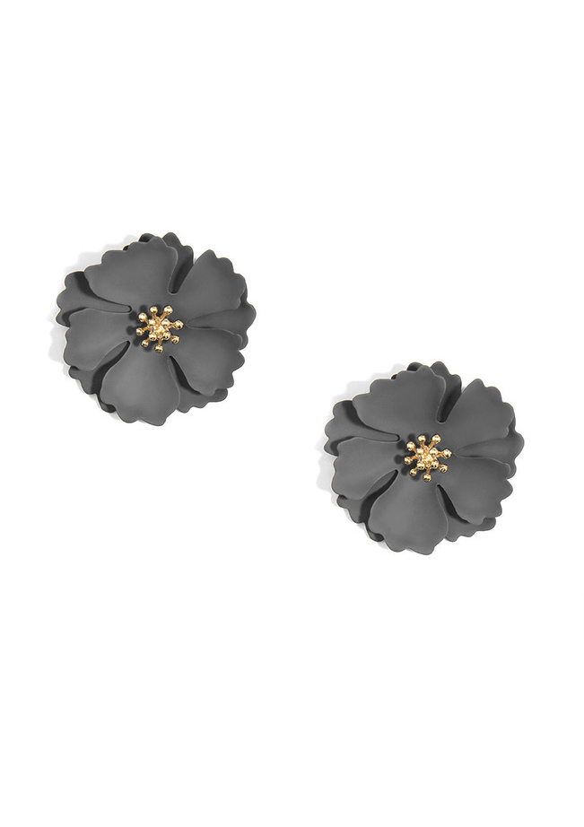 Handpainted metal flower earring with five petals and 18k gold-plated accents.