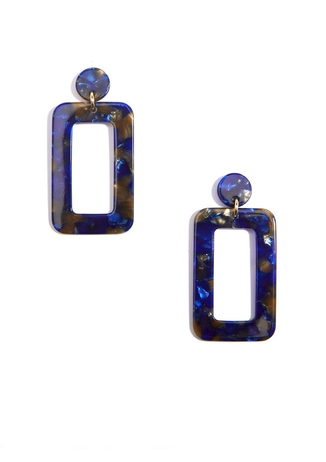Rectangular, tortoise-print drop earring with a cutout in the center.-Post Back-1.8" Drop-1.1" Width-Nickel and Lead Compliant (Hypoallergenic)