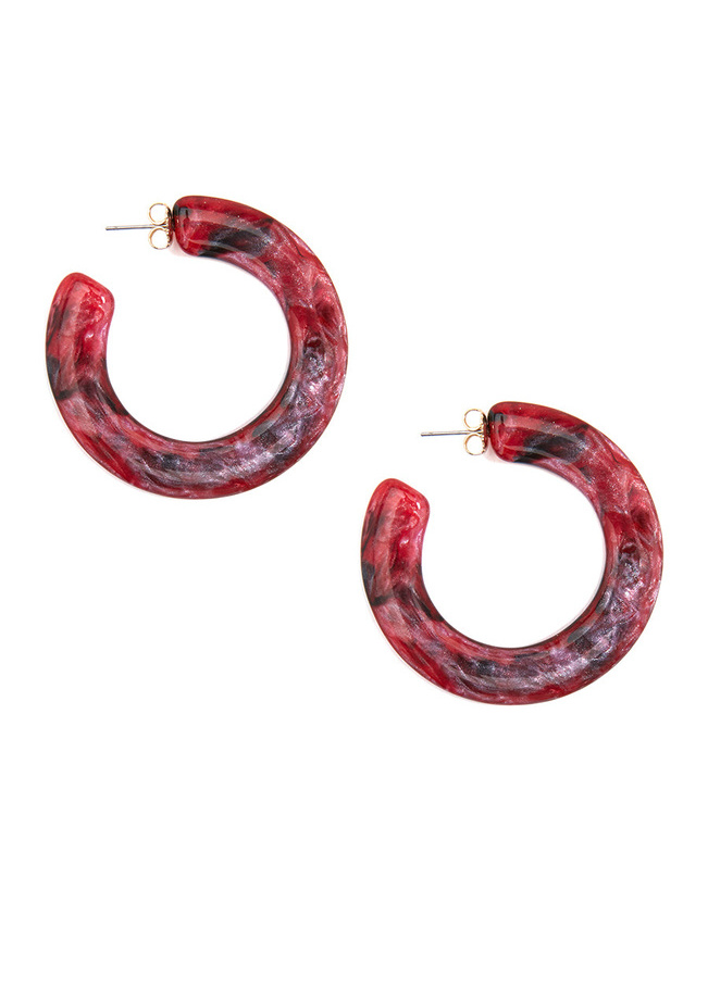 Chunky, resin hoop earring with marbled, metallic finish.-Post Back-2.3" Diameter-0.3" Width-Nickel and Lead Compliant (Hypoallergenic)