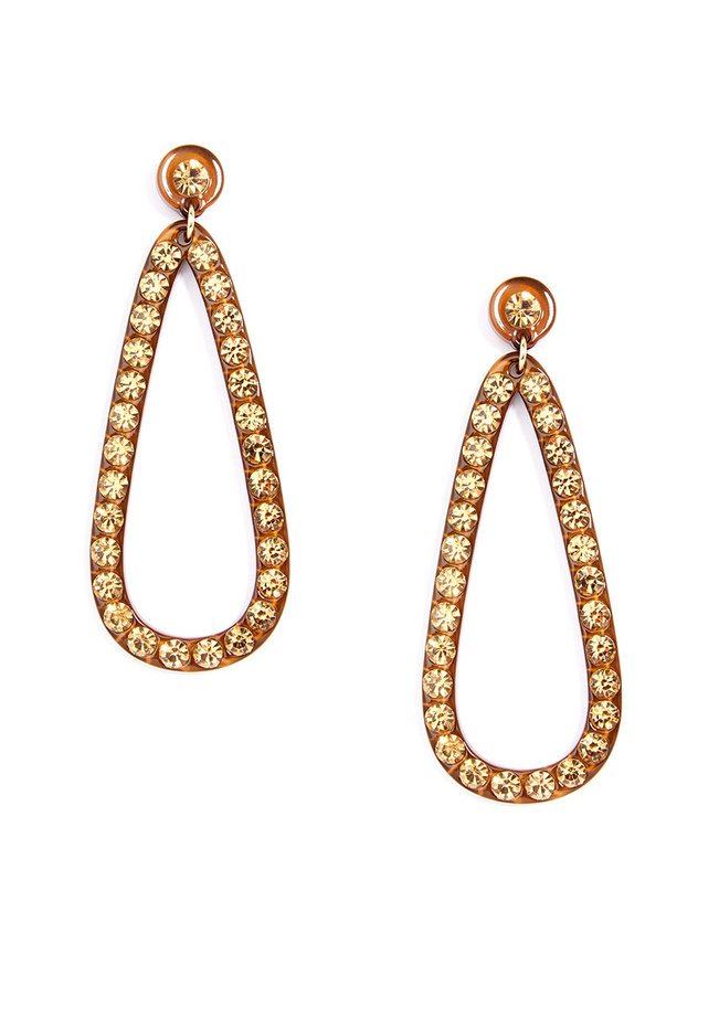 Oversized resin teardrop earring embellished with large crystals.-Post Back-3.5" Drop-1.3" Width-Nickel and Lead Compliant (Hypoallergenic)