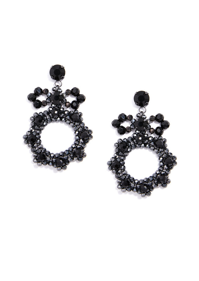 Handmade earring featuring a crystal post and crystal-embellished bow and drop hoop.