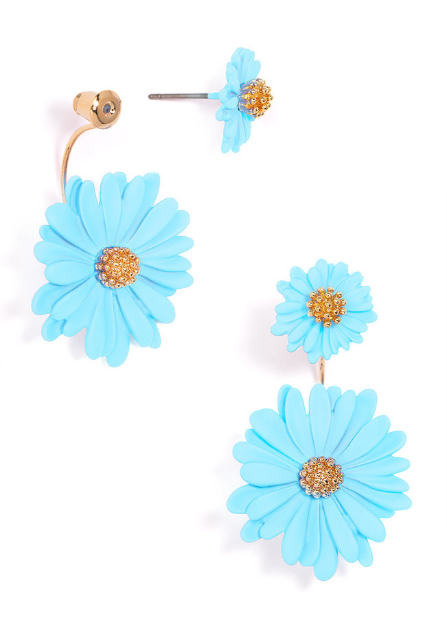 Painted metal daisy-shaped earring in a two-piece jacket style with 18K gold-plated accents.