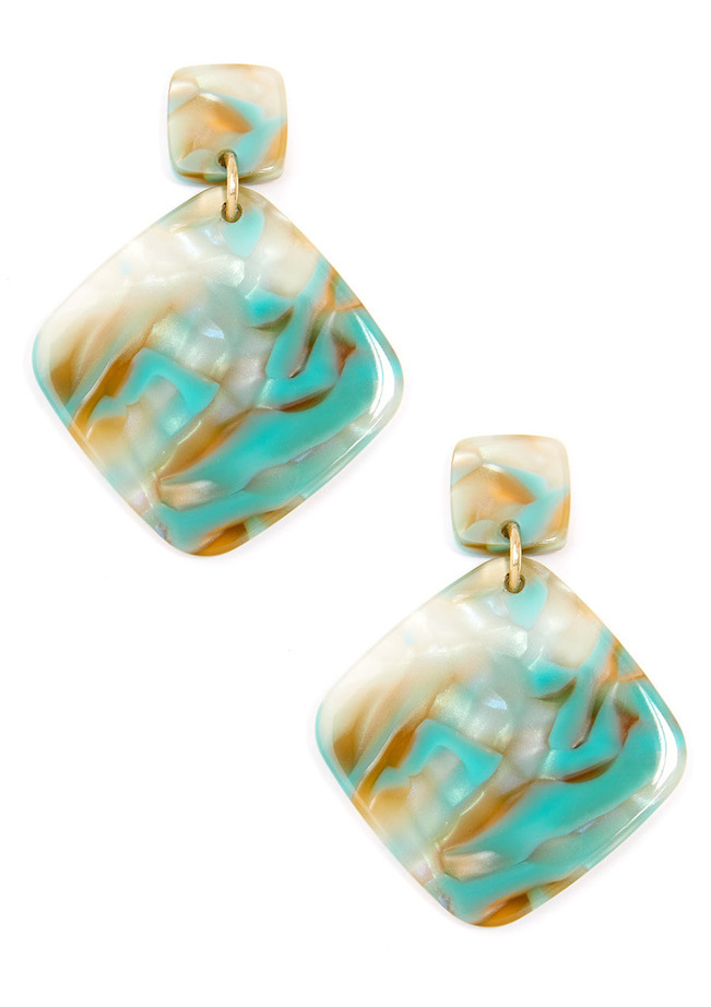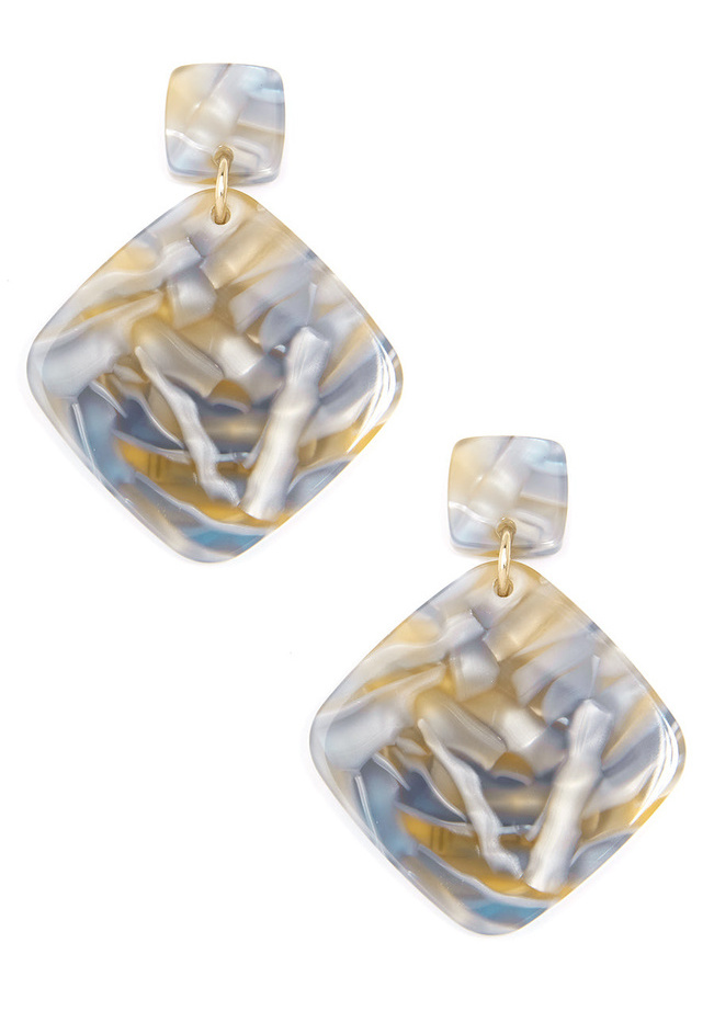 Lightweight acetate drop earring with gold accents-Post Back-2.1" Drop-1.6" Width-Nickel and Lead Compliant (Hypoallergenic)