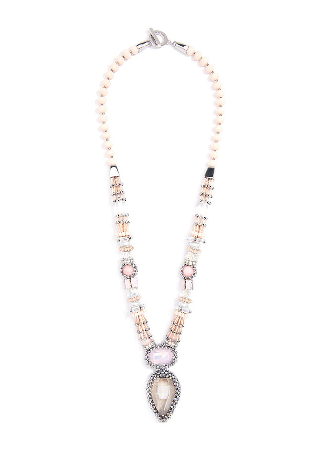 Beaded Pendant Necklace w/drop clear stone- Style Necklace- Nickel and Lead Compliant (Hypoallergenic)FINAL SALE