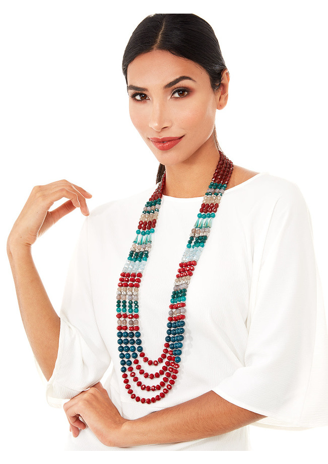 This is not your average beaded necklace. With a pre layered design, this beautiful handmade necklace is comprised of sparkling beads in chic color combinations that are sure to wow any crowd.