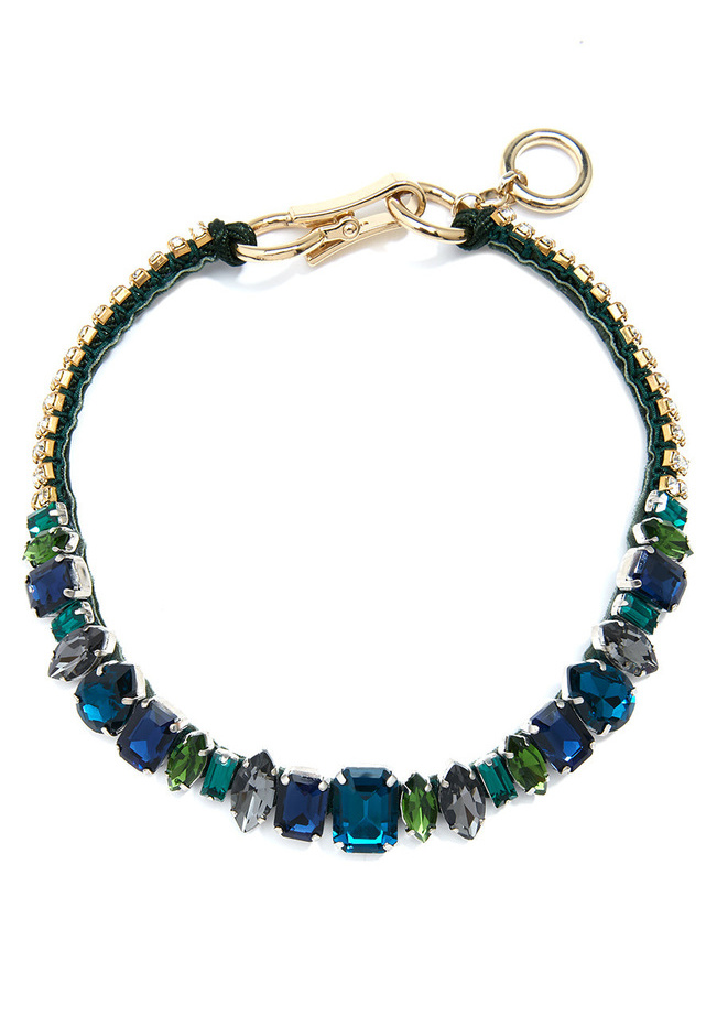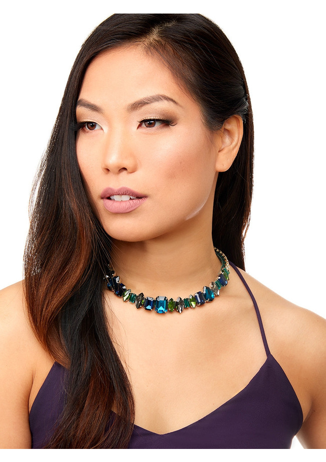 This collar necklace is sure to add some bling to your wardrobe with its different sized crystals and gemstones.