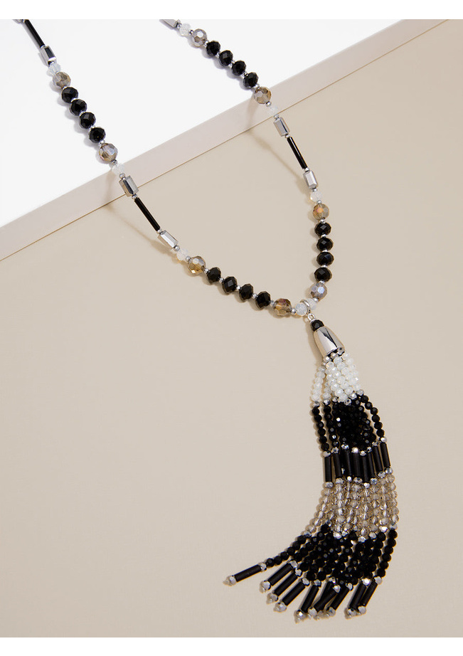 This beaded tassel necklace will add just the right sparkle to any look. Classic and versatile in design, this tassel can be worn dressed down or dressed up. It can be easily layered with other necklaces or worn alone for a statout statement. This extremely wearable necklace is definitely a must have for all seasons.