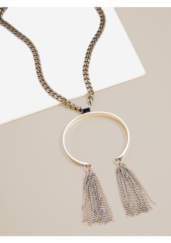 Grab the horns by the fringe with this statement metal necklace.