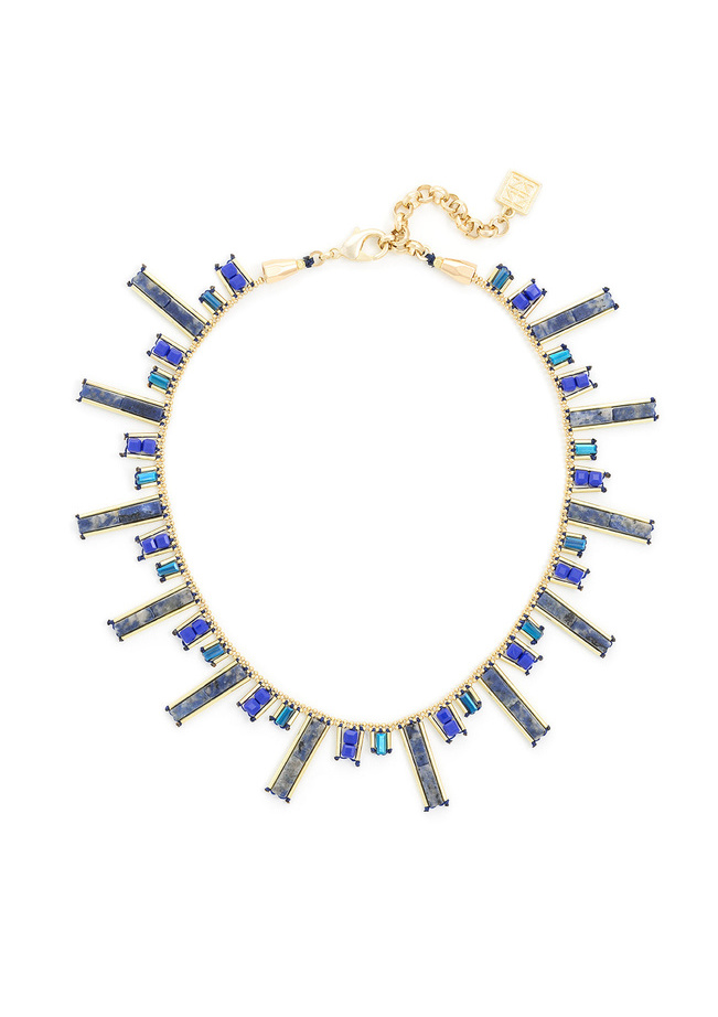 This handmade collar necklace features a beaded and marbled stone mix.