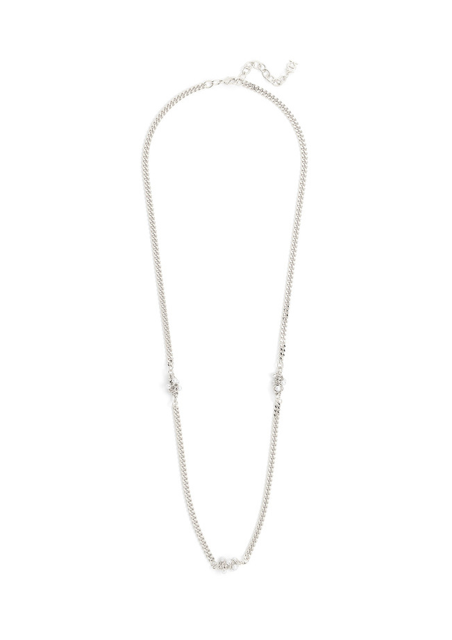 This chain link necklace features a pearl knots design on it's side and center.