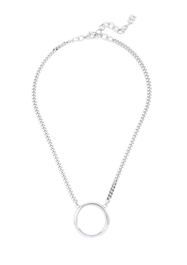 Minimal and sleek, this Miami Cuban link collar necklace features a ring pendant giving a hard twist to the feminine shape.