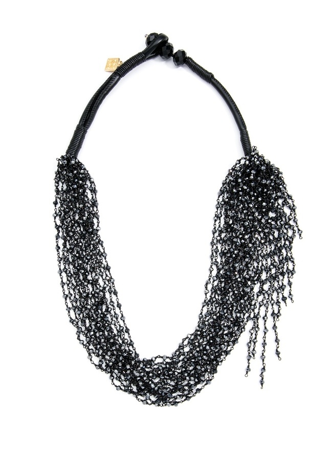 Handmade, gem-cut beaded layer collar necklace Button Loop 26" Length -Nickel and Lead Compliant (Hypoallergenic)