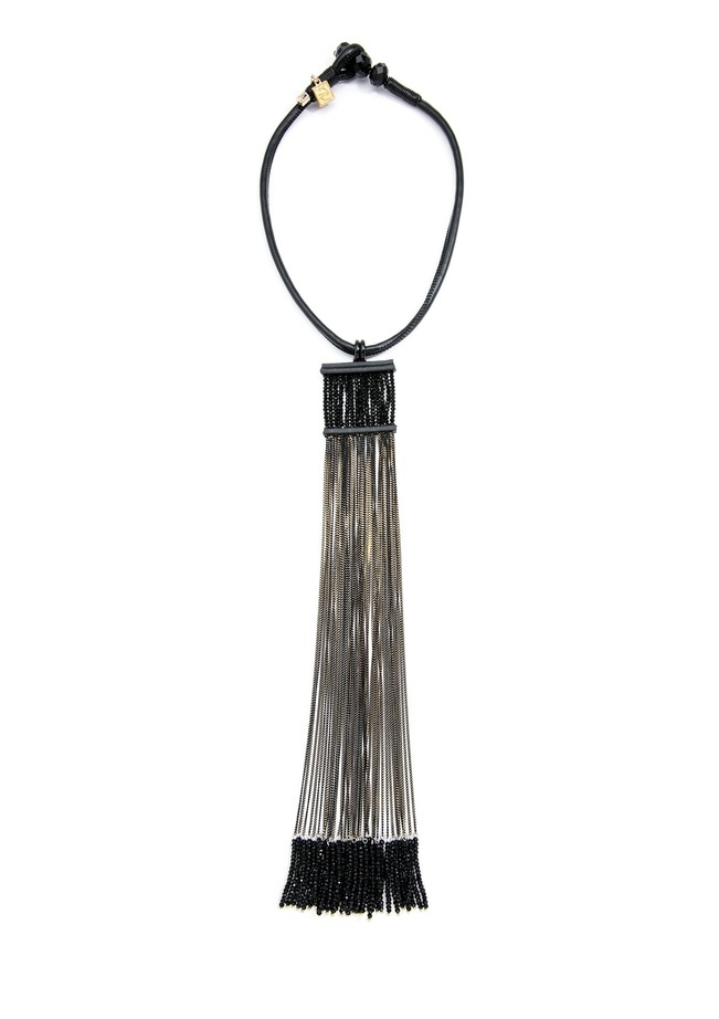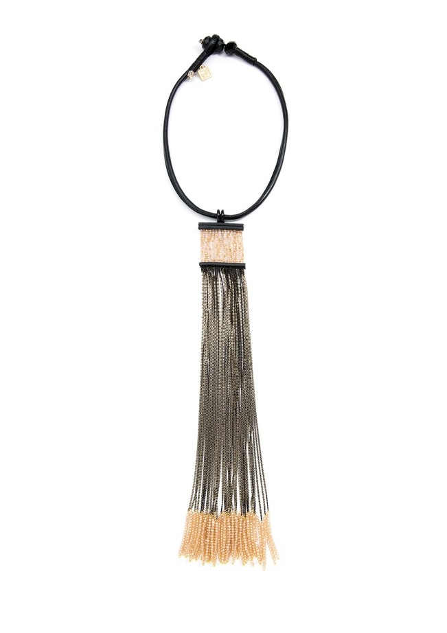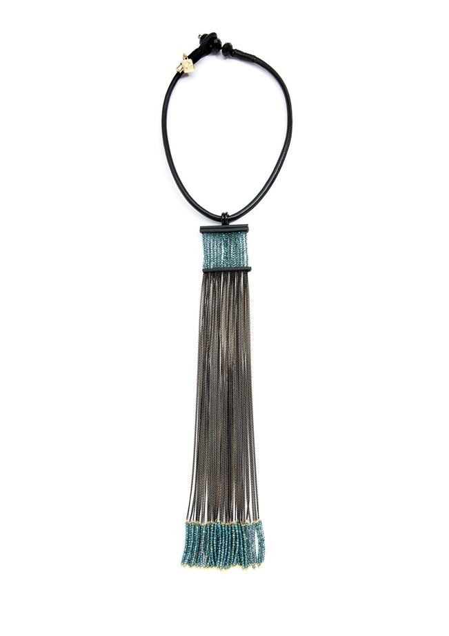 Handmade vegan leather collar with gem-cut beaded tassel drop Button Loop 20" Length -Nickel and Lead Compliant (Hypoallergenic)