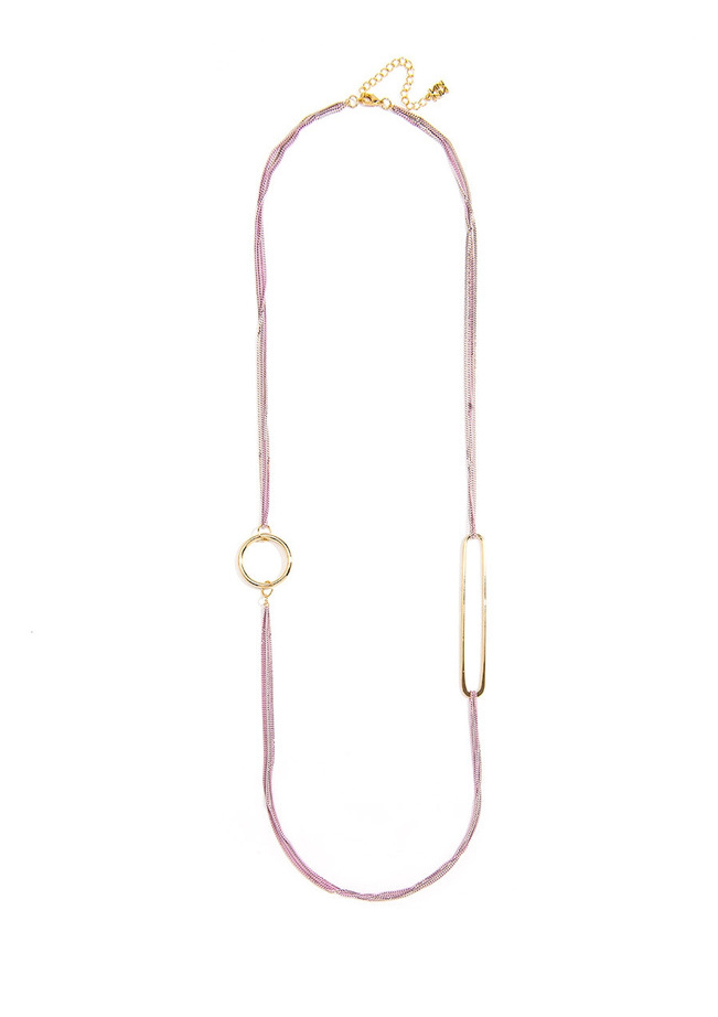 Long multi-stranded necklace with painted metal chains and 18k gold-plated gold link accents. Due to the handmade nature of this style, products may slightly vary in color.