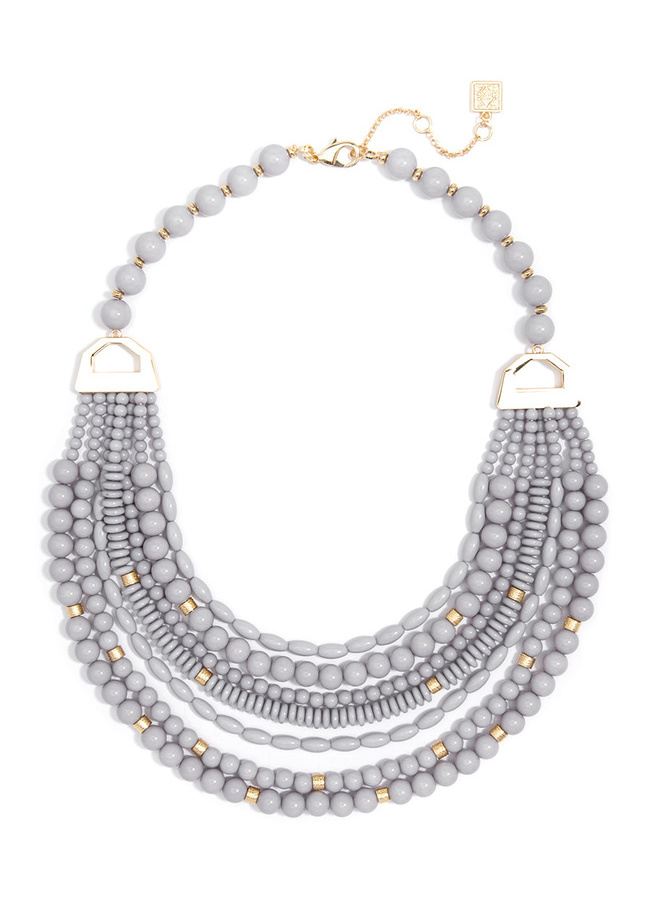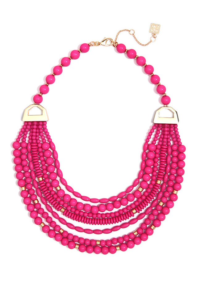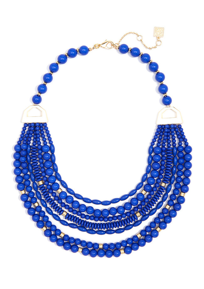 Glossy mixed beads layered bib necklace with gold-tone accents.