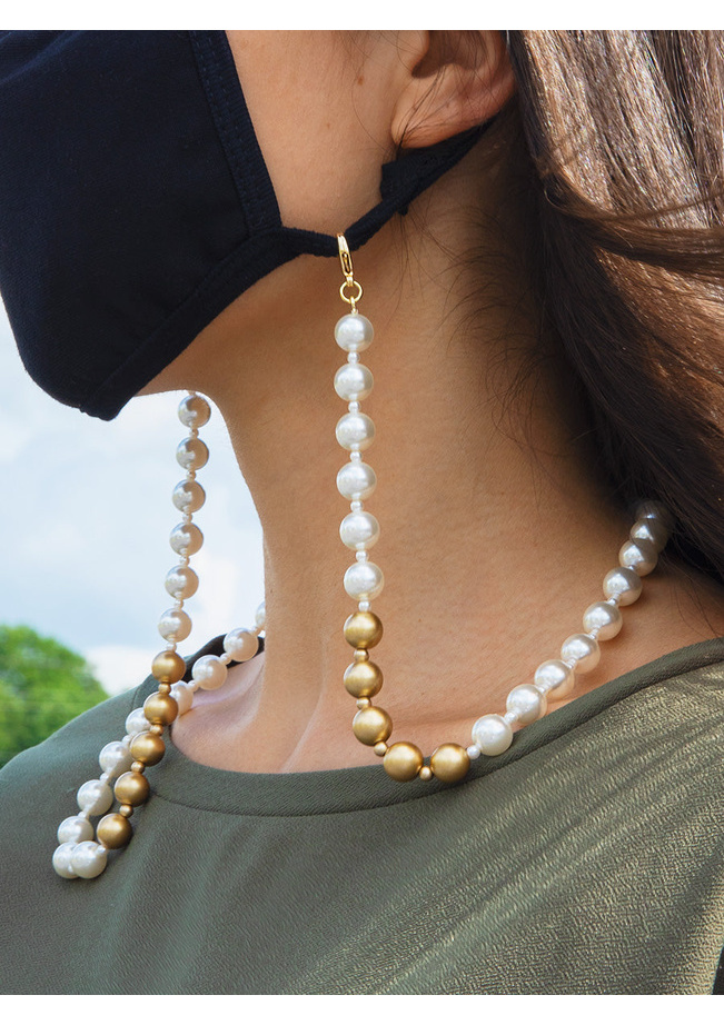 Made from premium-grade faux pearl beads and matte metallic beads. Comes with clear rubber loops to fit any pair of glasses and lobster clasps for clipping onto any mask. Can also be worn as a necklace or wrap bracelet.