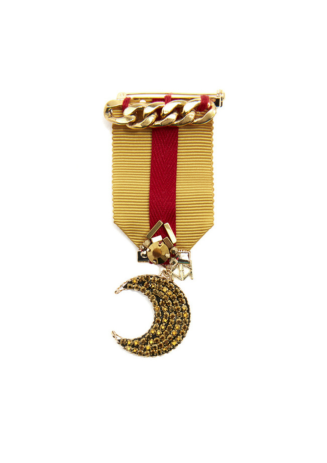 Handmade pin featuring a ribbon with hanging crystal-embellished pendant.Pin-4" Drop-2" Width-Nickel and Lead Compliant (Hypoallergenic)