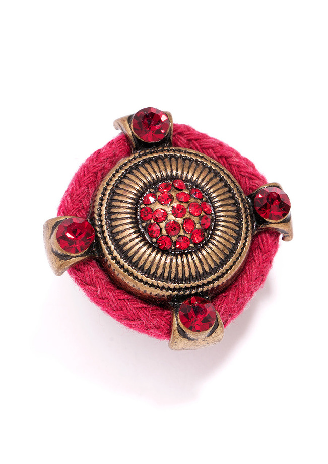 Gemstones, metal, and fabric rope...this detailed ring is pulling out all the stops...and materials!