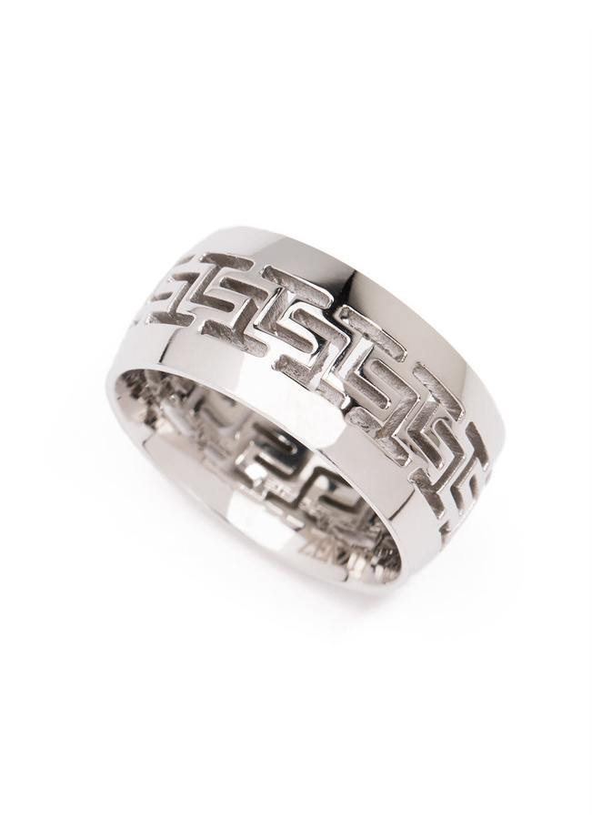 This stunner is a statement all on its own with a greek key printed middle and shiny gold finish.