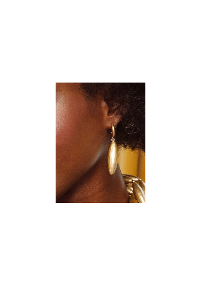 Drop earring featuring an 18K gold-plated spindle shape. -Post Back -Triple-Plated -Hypoallergenic -Length 2.2"